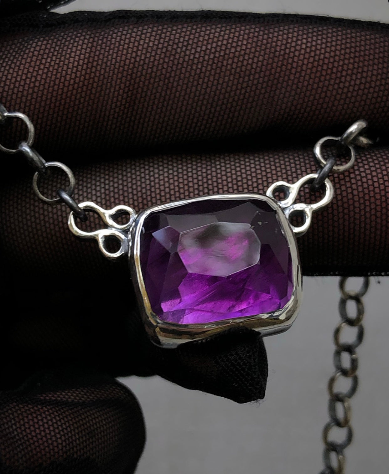Handcrafted Sterling and fine silver amethyst. Set in a highly polished fine silver bezel this warm brightly saturated purple amethyst is so eye catching!!🔮