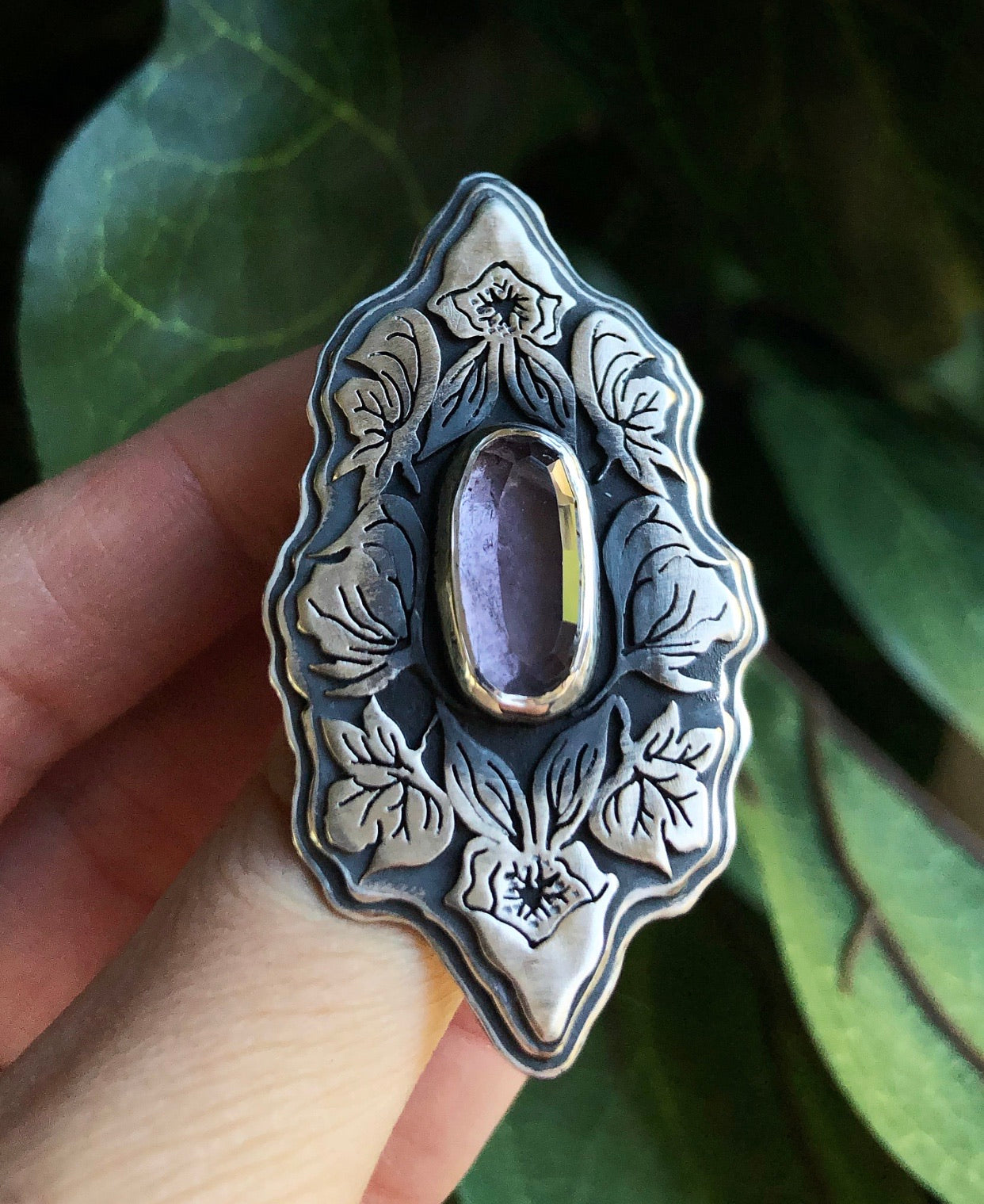 Handcrafted from sterling and fine silver, oxidized and polished for a dual matte and shiny finish.