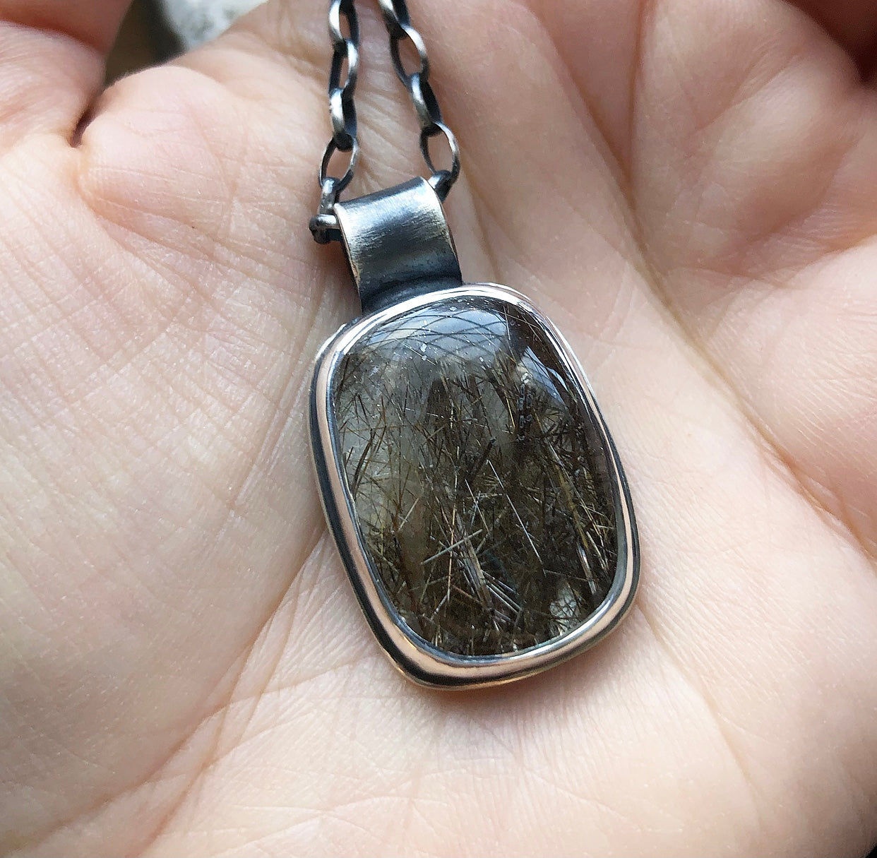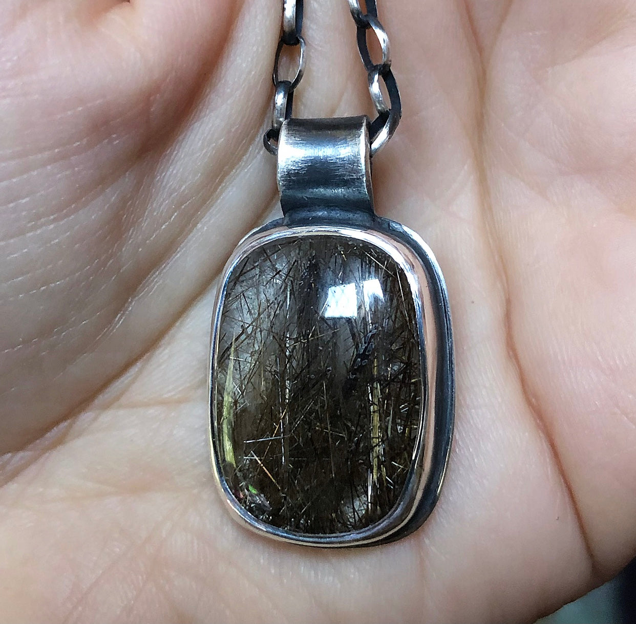 Set in sterling and fine silver,each of these nostalgia sensory pendants has a unique color and/or texture reminiscent of autumn. They are included and/ or rutile quartz and a natural mix of minerals and other stones have created this texture and look.